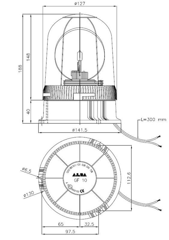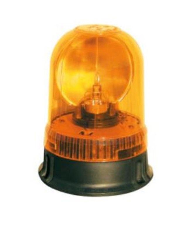 Gelbe Rundumleuchte mit festem, flachem Sockel und 3 Befestigungspunkten, 24 V, inklusive Kabel
