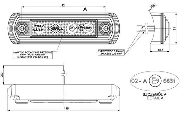 12–24 V. Mit 4 LEDs. Mit Gummipad zur Montage an einer Schutzleiste. Mit 2 x 0,75 mm² Kabel, 0,25 m lang.