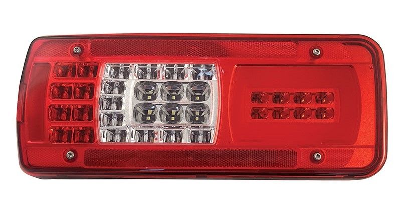 DAF (2012–2016) / IVECO (ab 2016) Blinker links mit Seitenstecker/Reflektor, Nebelscheinwerfer, Positionslicht, Bremslicht, Blinker, Rückfahrscheinwerfer, Seitenmarkierungsleuchte, Kennzeichenbeleuchtung, LED, 400 x 160 mm, 152 mm Seitenstecker HDSCS 2012–2016 / ab 2016 / ab 2012