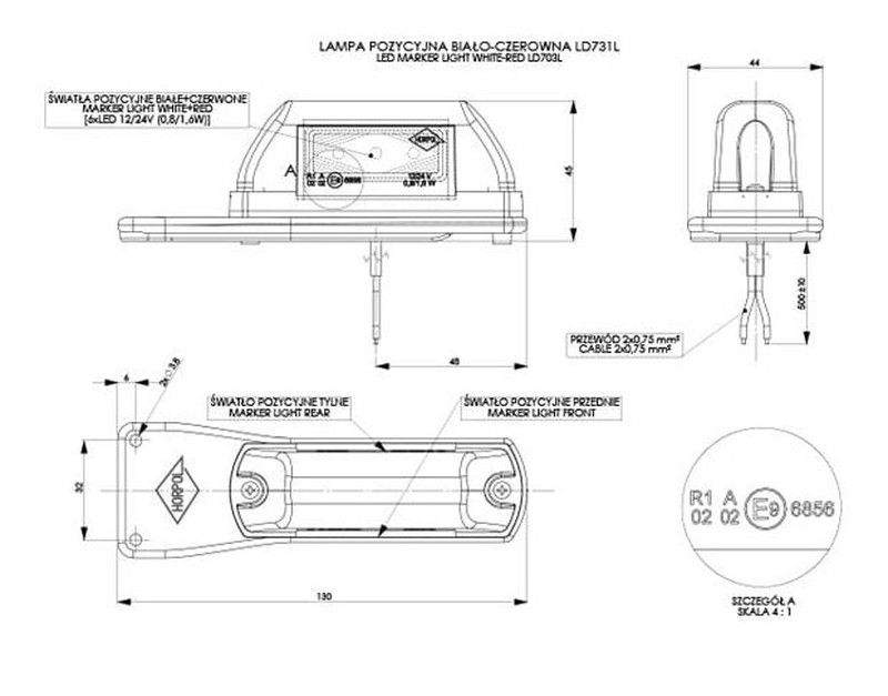Linke weiß-rote LED-Positionsleuchte mit Horpol-Halterung