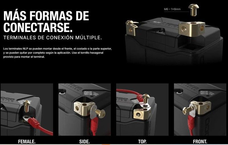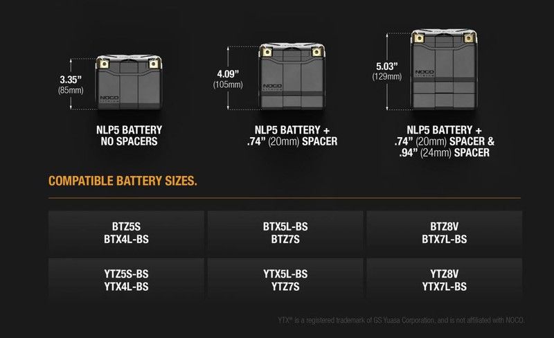 Die NOCO Lithium NLP5 12V Powersports-Batterie ist eine Batterie der Gruppe 5 mit einer Kapazität von 2 Ah (25 Wh) und 250 Kaltstartstrom (CA). Sie übertrifft Blei-Säure-Motorradbatterien in nahezu jeder Hinsicht: Sie sulfatiert nicht, aktiviert sich nicht, benötigt keine Säure, ist wartungsfrei, benötigt kein Wasser und wird voll geladen und einbaufertig geliefert. Dies ist die fortschrittlichste und am besten entwickelte Lithium-Batterieserie für Powersports. Sie liefert über 250 CA, über 50.000 Starts und über 2.000 Ladezyklen und übertrifft damit ihre Blei-Säure-Konkurrenten. Nutzen Sie den Lithium-Modus eines beliebigen GENIUS-Ladegeräts, um eine NLP-Batterie in wenigen Minuten vollständig aufzuladen. Dank fortschrittlicher Schnellladetechnologie liefert sie bereits nach 5 Minuten Ladezeit ausreichend Startleistung. Ausgestattet mit einem fortschrittlichen, selbstaktivierenden Batteriemanagementsystem (BMS) bietet sie maximalen Schutz, optimale Leistung und bidirektionalen Zellenausgleich für dauerhafte Stabilität. Ein BMS-Reset ist nicht erforderlich. Die Batterie verfügt über eine speziell angefertigte Gummipolsterung und Schaumstoffeinlagen für längere Batterielebensdauer und sichere Verbindungen. Die NLP-Anschlüsse können je nach Anwendung von vorne, von der Seite oder von oben montiert und komplett entfernt werden. Zur Befestigung verwenden Sie die mitgelieferte Sechskantschraube. Ein abnehmbarer Montageblock ermöglicht den Einsatz der Batterie in weiteren Anwendungen. Modulare Montageabstandshalter lassen sich stapeln und an NLP-Batterien anbringen, um die BCI-Größe anzupassen und so die Batterie für zusätzliche Anwendungen sicher zu montieren. Kompatibel mit den meisten Motorsportmarken, darunter Aprilia, BMW, Buell, Ducati, Harley-Davidson, Indian, Triumph, KTM, Argo, Can-Am, Honda, Husqvarna, Kawasaki, Suzuki, Arctic Cat, BRP, Waverunner, Polaris, Vespa und viele mehr.