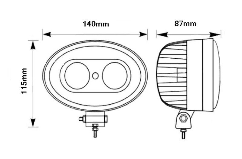 Ovale Arbeitsleuchte mit 2 LEDs und blauem Licht