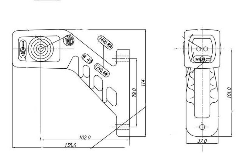 Kurze rechte LED-Positionsleuchte in Weiß, Gelb und Rot, 12-24 V